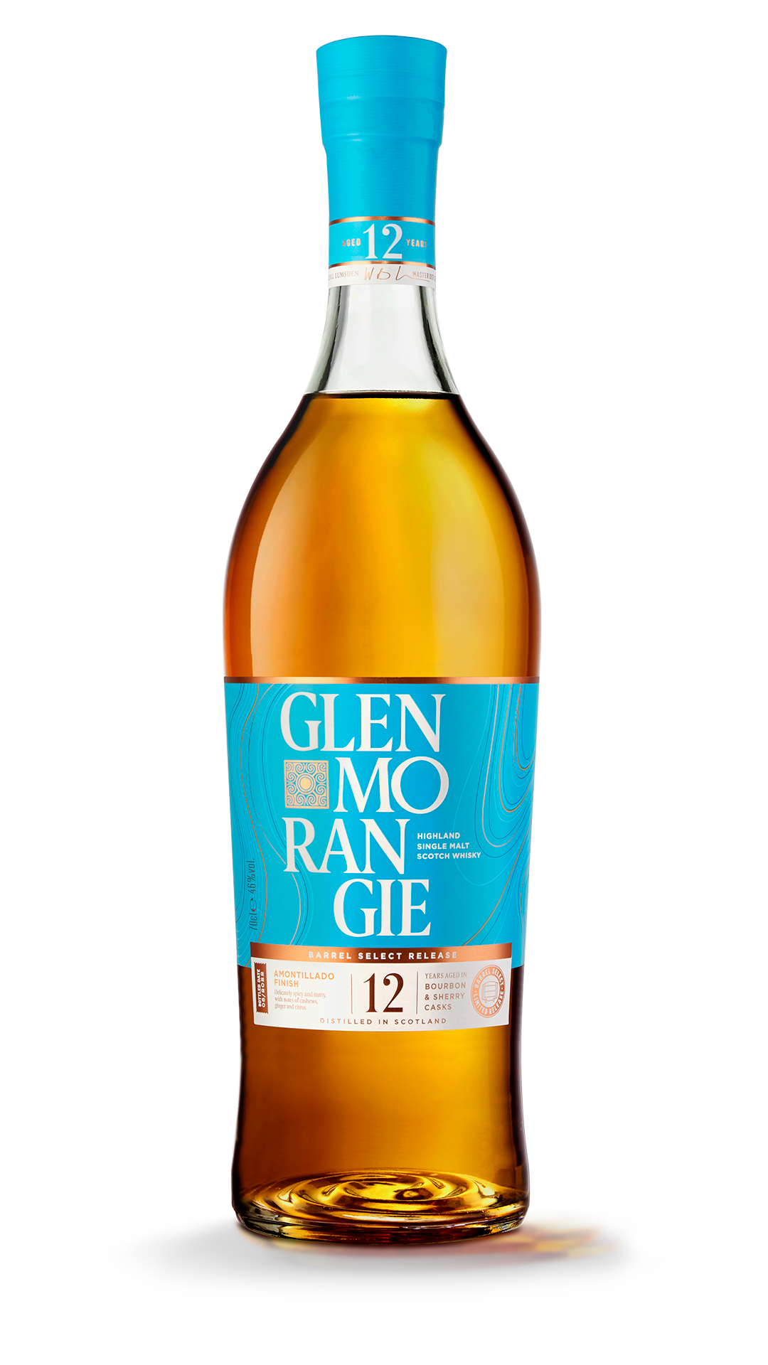 Eventually, Dr Bill sourced a precious handful of Amontillado casks. Then he filled them with a soft, mellow whisky which had spent eight years in American white oak bourbon barrels. Transferring it into the Amontillado casks, he left it to age for another four years, until it achieved the flavours he had dreamed of. Finished in this way, the whisky winds sherried hints of cashews, clove, ginger and dried fruit round Glenmorangie’s classic notes of peaches, orange and lemon balsam.